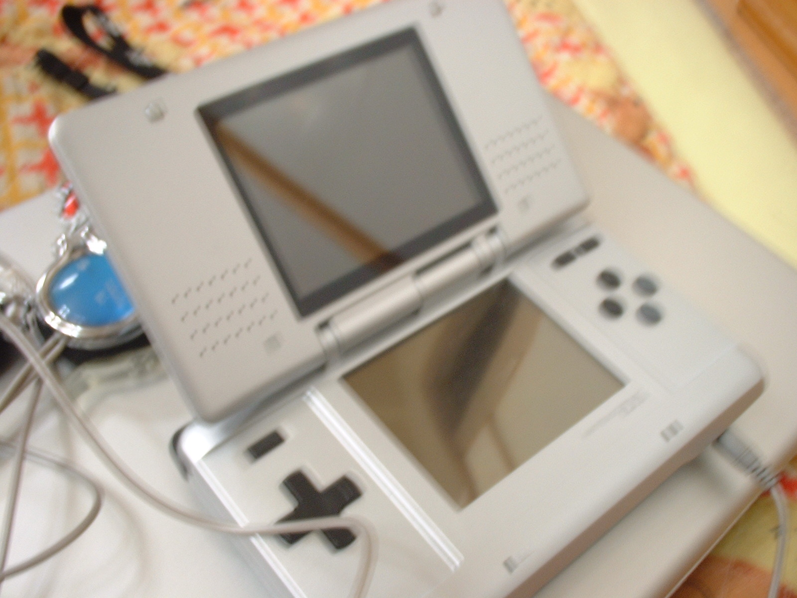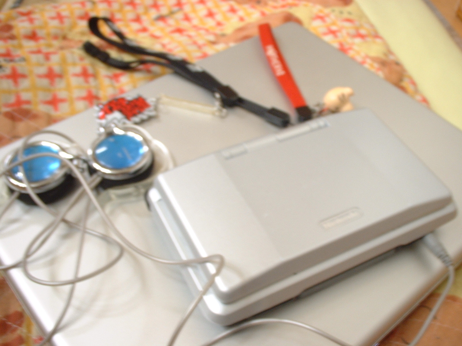 我がDS。1日1回は必ずこれ使ってます。(おいもりあるからね)後ろについてるストラップは「逆転裁判 限定品 異議ありストラップ+異議ありクリーナー」もう一つは「MOTHER1+2予約限定ストラップ(どせいさんつき)」そして新しく買い換えたイヤホン。そして下に写るのは、マイパソコンです。さて、意味わかんないけど、開いてみましょう。