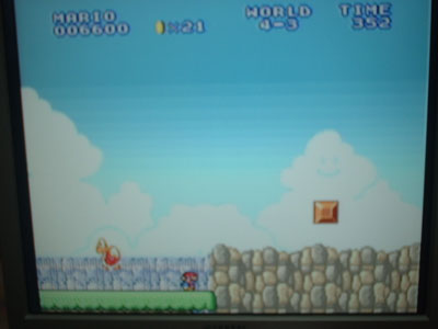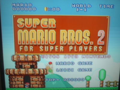 さぁ、前回(自分の中では)好評だったマリオ1の制覇。今回はレベルを上げて、スーパーマリオ2の攻略に挑みます。25日のNEWに備えての練習でもあるんですね〜。先に申しますがうまく撮れてるのと、ぶれぶれなのがあります。