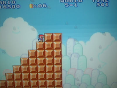 ラスト・・・。ここで終わりだぁー!!頑張ります!!相変わらずルートはきついし、海のステージのイカとバーがもっとイヤだ;;その後、垂直落下で土管に入るんです。ここもむずい・・・。