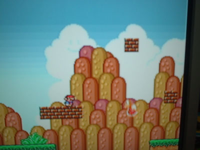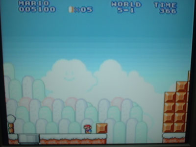 「動くリフト」これが、またうざいのよ・・・。ウィーンってすいすい乗ってれば簡単なんだけど・・・。(乗って陸地に着く)「ブブーッ!!」うぇ!?ループステージ!?途中にいるパタパタを踏んで、上にある土管に入らなきゃいけないという・・・。こりゃあ、難しい。ちょっと苦戦。2・3回ループして、ようやくクリア♪