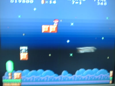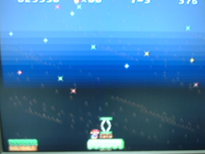 このジャンプ台ではるかかなたに飛んでいき、かつ、奥の狭い陸地に降りて、また、ジャンプ台で飛んでいくというのを繰り返して行くのです・・。この追い風とマリオの位置の調整が難しい。ってか、画面外なので、どこに落ちてくるのかわからないのがきつい。失敗すると、はじっこから落ちて、そのまま落下します。