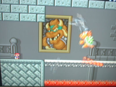 ここでも、毎度お馴染みループです。これ、ほんと疲れるよなぁ・・・。なんとか、奥に着くと、クッパさんが登場!